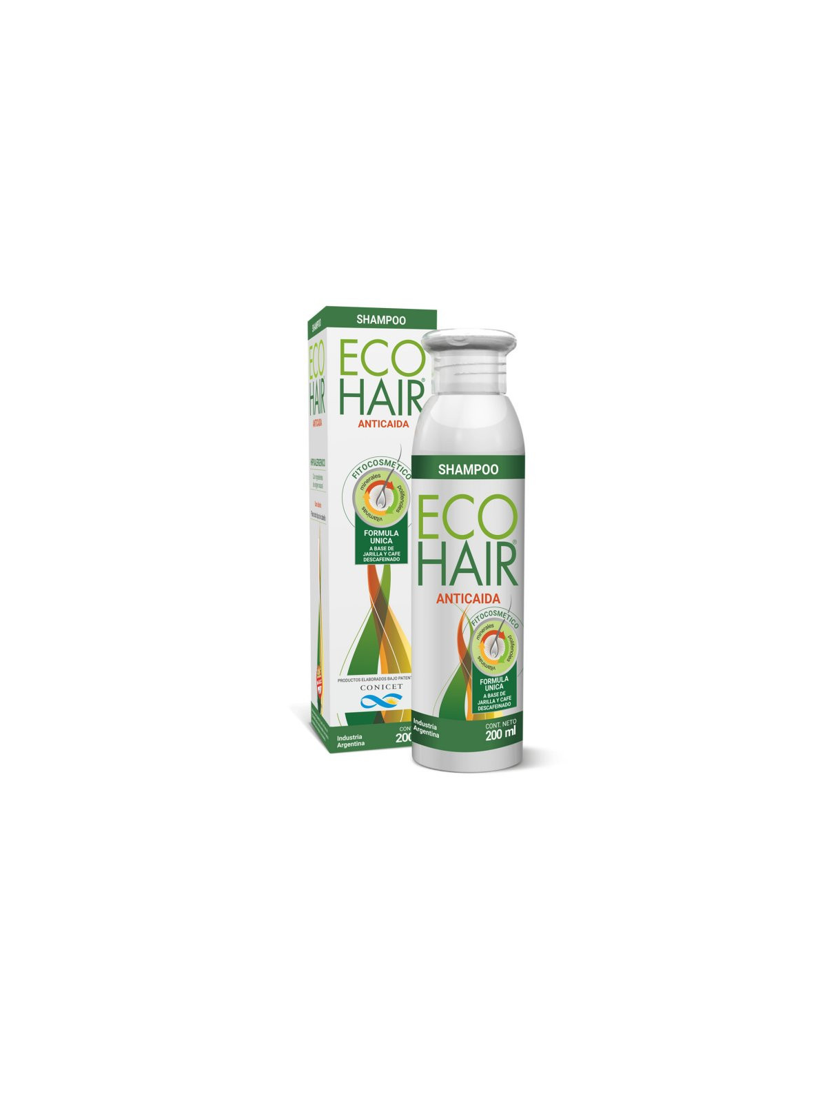 SHAMPOO ANTICAÍDA ECOHAIR, producto cosmético desarrollado a partir de Extractos de Jarilla orgánica (Larrea divaricata) y Café descafeinado (Coffea arabica). El extracto de Jarilla tiene propiedades antioxidantes y antiinflamatorias, además de contener vitaminas y minerales y en conjunto al extracto de café, ayudan a frenar la alopecia y estimular el crecimiento del cabello.